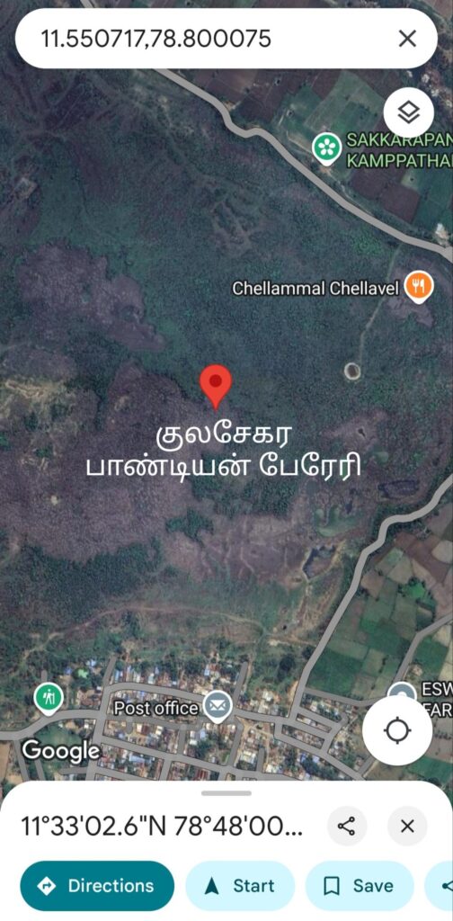 மாமன்னர் குலசேகர பாண்டியனின் பெயரில் பெரிய ஏரி இருந்துள்ளது